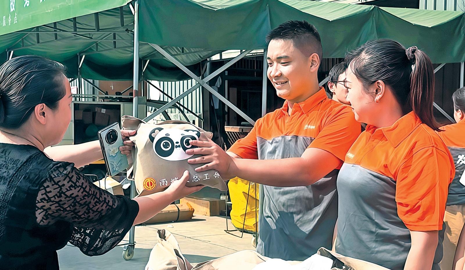 “工会的‘清凉’不仅是物资支持,更是对劳动者辛勤付出的敬意与感谢。”同一时间,芦山县总工会在雅安惠民村镇银行户外劳动者驿站开展“情系新业态・夏日送清凉+爱心义诊”活动,为40余名外卖配送员送上防暑降温物资与关怀,用“清凉”传递工会“娘家人”的温暖。