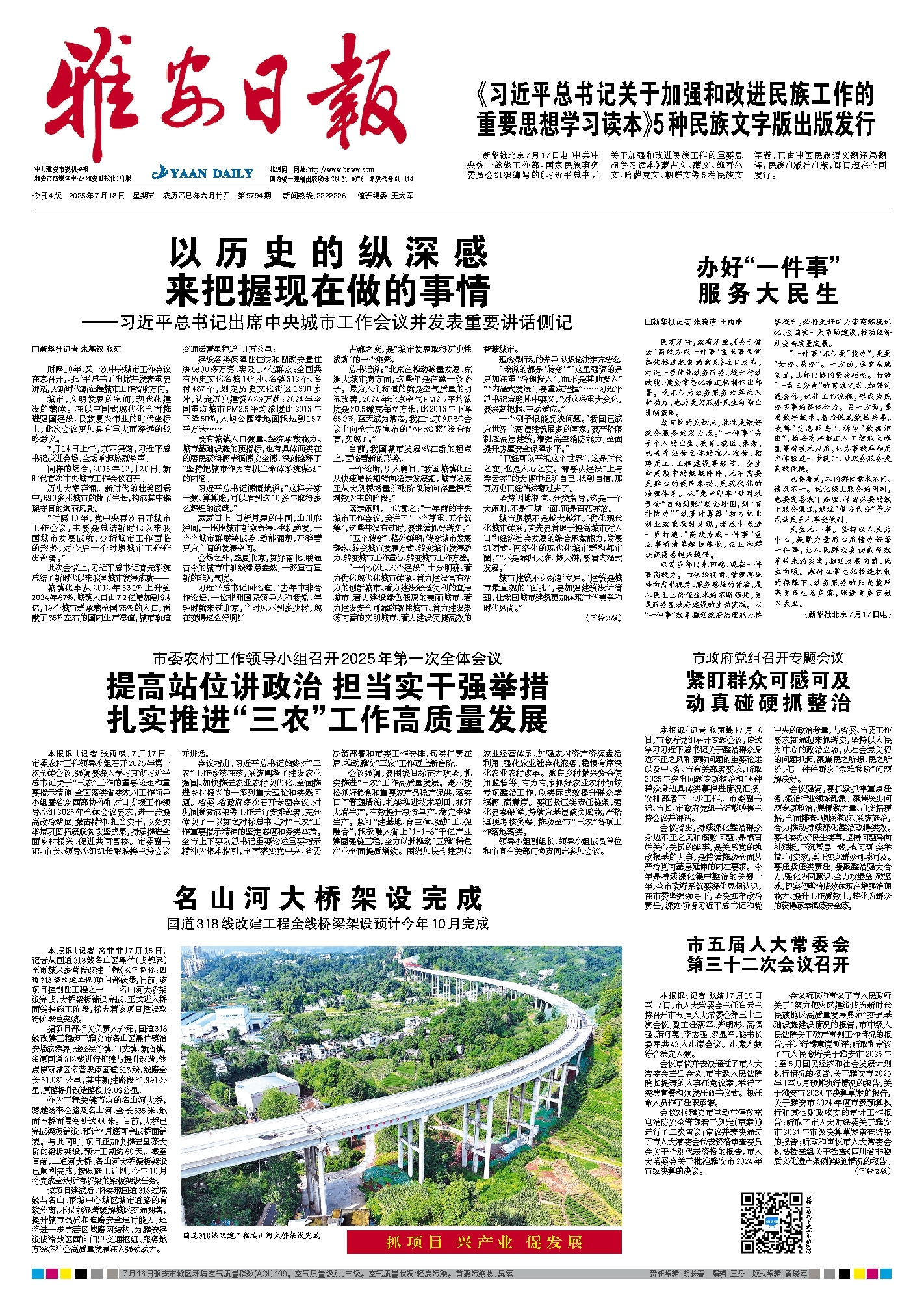 会议听取和审议了市人民政府关于“努力把灾区建设成为新时代民族地区高质量发展典范”交通基础设施建设情况的报告,市中级人民法院关于破产审判工作情况的报告,并进行满意度测评;听取和审议了市人民政府关于雅安市2025年1至6月国民经济和社会发展计划执行情况的报告,关于雅安市2025年1至6月预算执行情况的报告,关于雅安市2024年决算草案的报告,关于雅安市2024年度市级预算执行和其他财政收支的审计工作报告;听取了市人大财经委关于雅安市2024年市级决算草案审查结果的报告;听取和审议市人大常委会执法检查组关于检查《四川省非物质文化遗产条例》实施情况的报告。