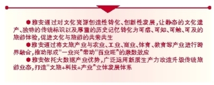 文旅深度融合的关键在于对在地文化的深度挖掘、现代表达与聚合呈现。雅安通过对文化资源创造性转化、创新性发展,让静态的文化遗产、独特的传统标识以及厚重的历史记忆转化为可感、可知、可触、可及的旅游体验,促进文化与旅游的共荣共生。