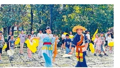 活动中,省级非遗代表性传承人杨虎亲授芦山花灯“学、说、逗、唱”绝活。孩子们体验画“花鼻子”丑角妆、学“幺妹子”身段,组团挑战花灯戏。