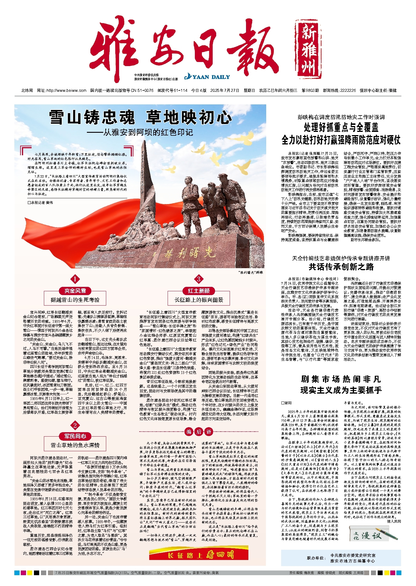 七月高原,赤诚辉映千年积雪;万里征途,信念擎举猎猎红旗。时光荏苒,雪山草地的红色烙印从未褪色。