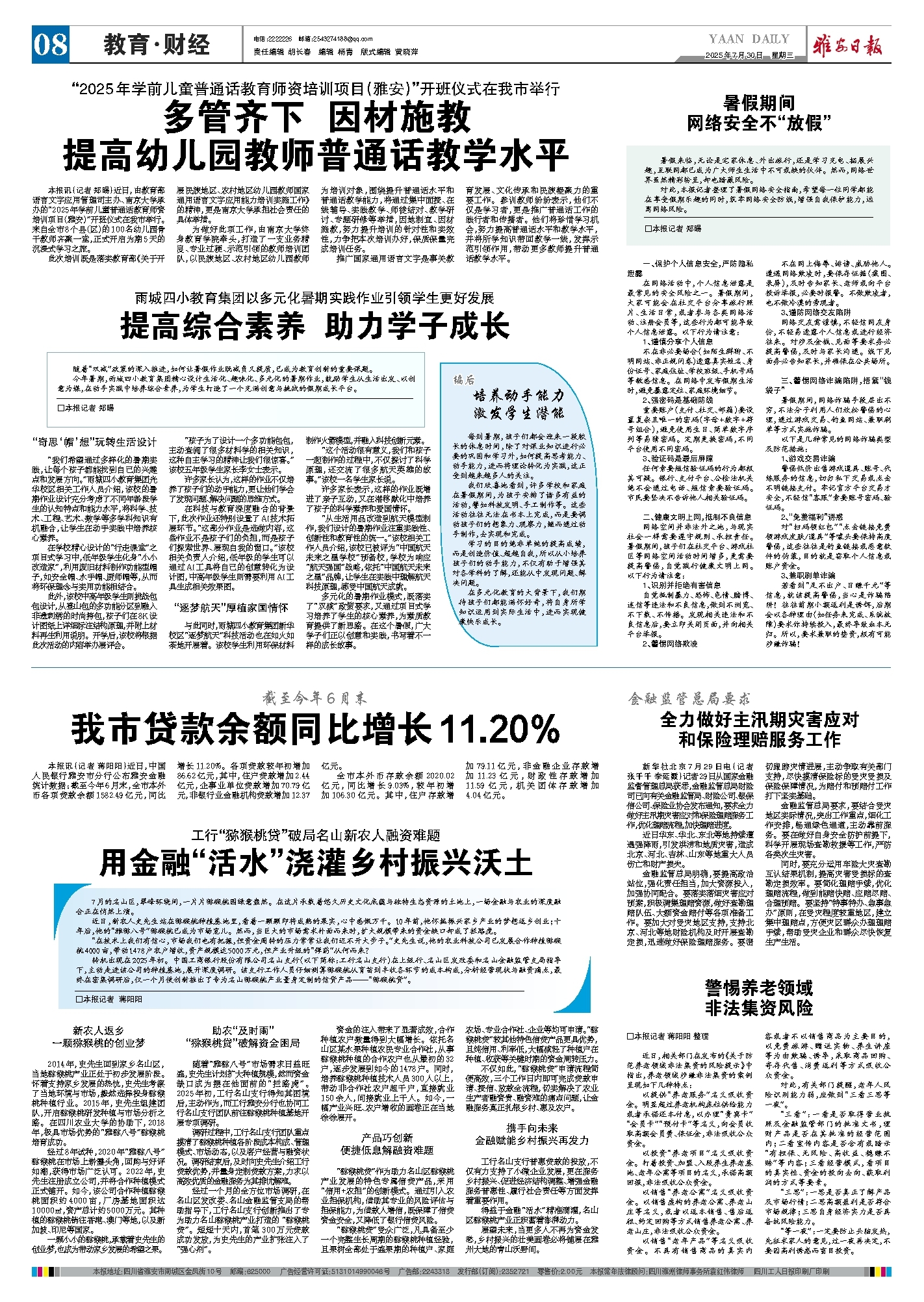 本报讯(记者 蒋阳阳)近日,中国人民银行雅安市分行公布雅安金融统计数据:截至今年6月末,全市本外币各项贷款余额1582.49亿元,同比增长11.20%。各项贷款较年初增加86.62亿元,其中,住户贷款增加2.44亿元,企事业单位贷款增加70.79亿元,非银行业金融机构贷款增加12.37亿元。