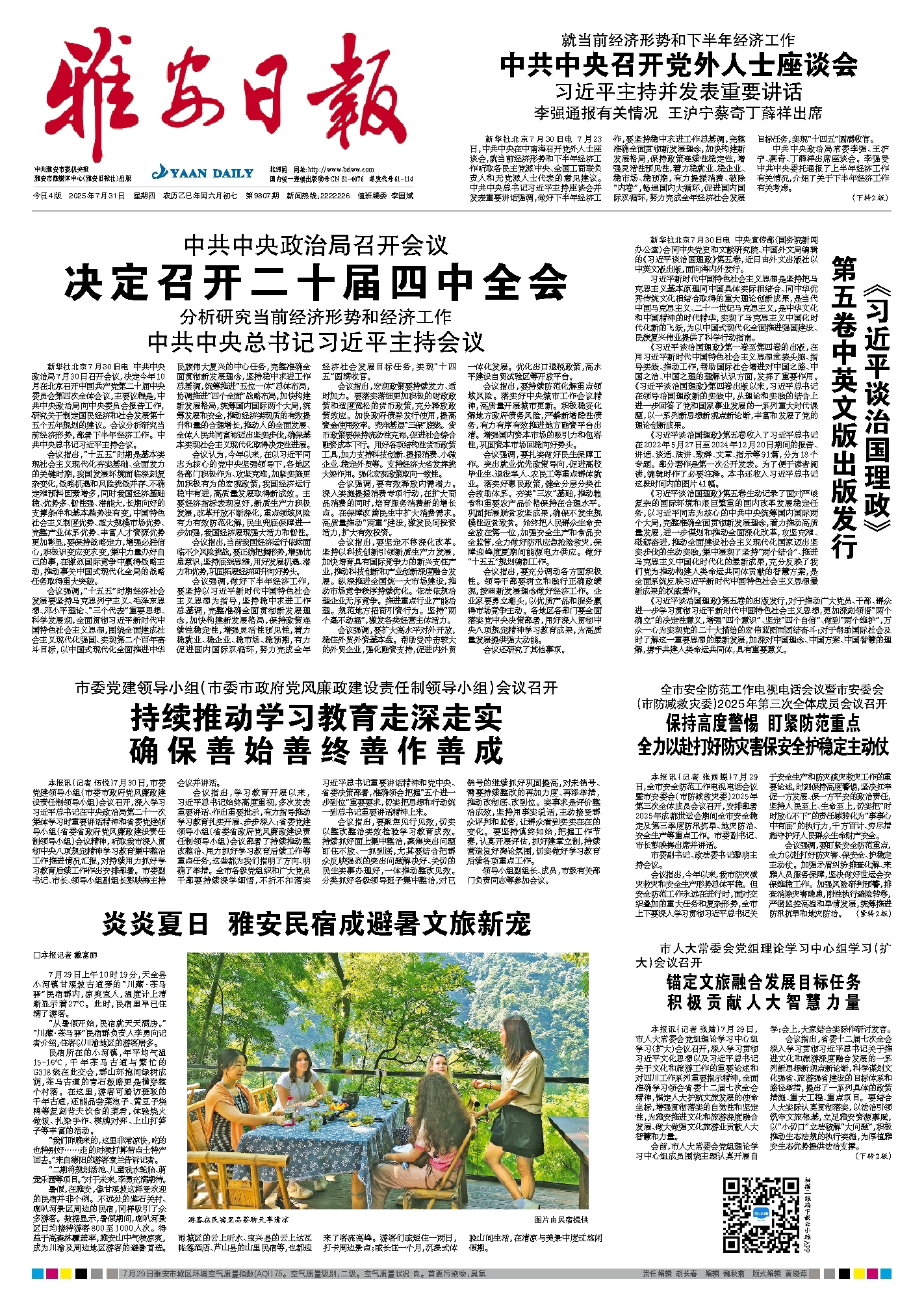 新华社北京7月30日电 7月23日,中共中央在中南海召开党外人士座谈会,就当前经济形势和下半年经济工作听取各民主党派中央、全国工商联负责人和无党派人士代表的意见建议。中共中央总书记习近平主持座谈会并发表重要讲话强调,做好下半年经济工作,要坚持稳中求进工作总基调,完整准确全面贯彻新发展理念,加快构建新发展格局,保持政策连续性稳定性,增强灵活性预见性,着力稳就业、稳企业、稳市场、稳预期,有力提振消费、破除“内卷”,畅通国内大循环,促进国内国际双循环,努力完成全年经济社会发展目标任务,实现“十四五”圆满收官。