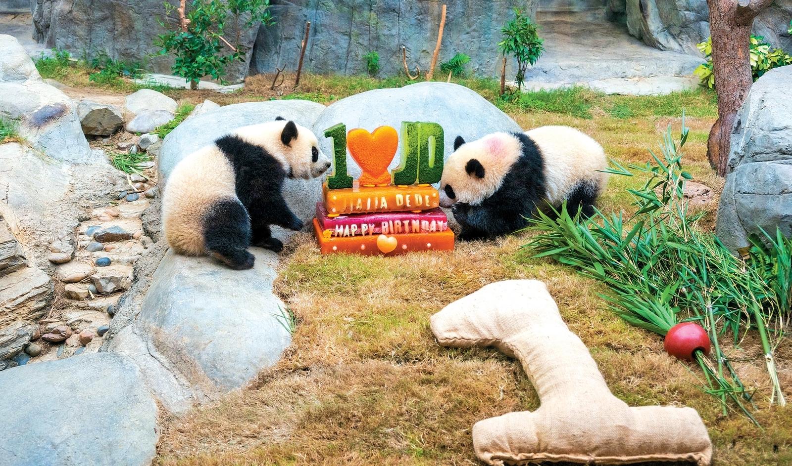 首对“港产”龙凤胎大熊猫 “加加”“得得”迎来周岁生日