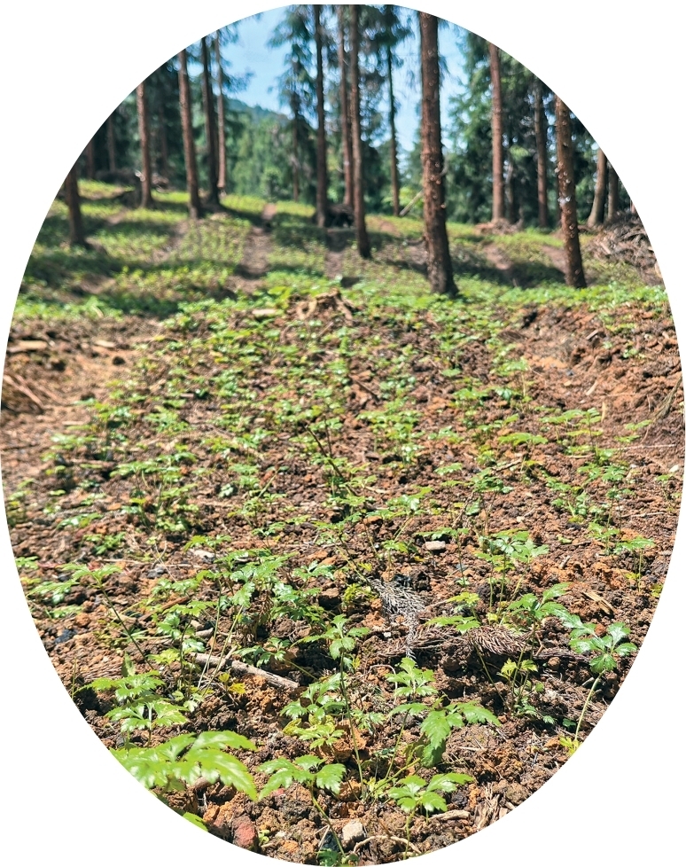 然而,在更多分散的集体林地中,林农却缺乏这样的专业技术。雨城区86%的林地所有权归集体所有,且幼中林资源占比极大,由于缺乏科学抚育,近七成的林子逐渐成了“黑森林”——林木过密导致透光性差,林下植被难以生长,生态效益和经济效益双双受限。