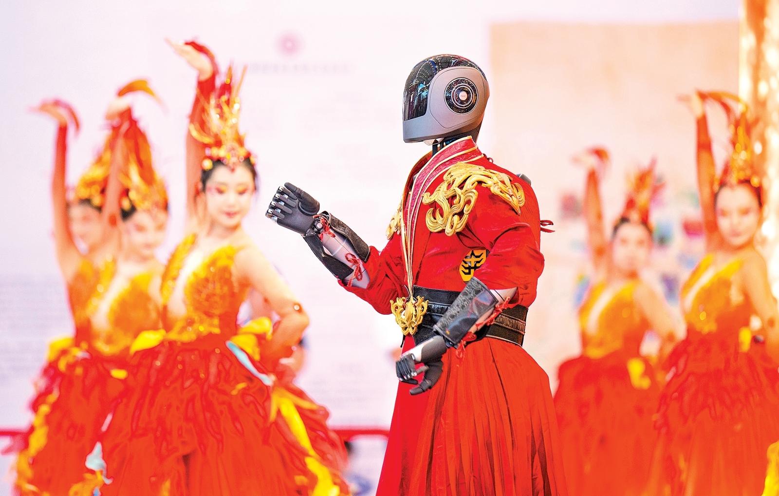 图为9月12日在2025中国文化旅游产业博览会上拍摄的人形机器人舞蹈表演。