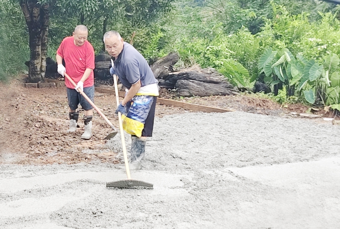 施工人员对院坝进行改造