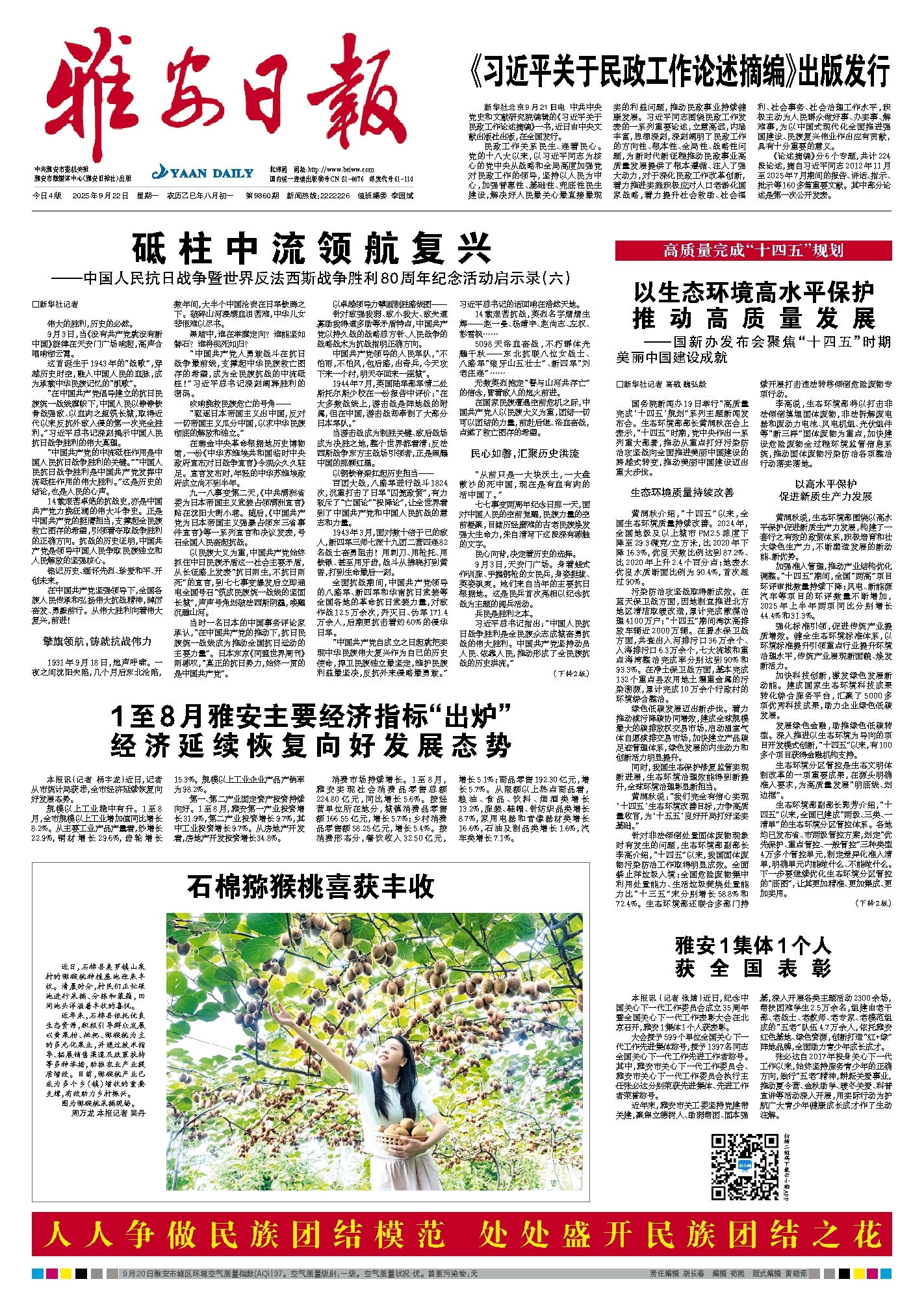 在中国共产党坚强领导下,全国各族人民传承和弘扬伟大抗战精神,踔厉奋发、勇毅前行。从伟大胜利向着伟大复兴,前进!