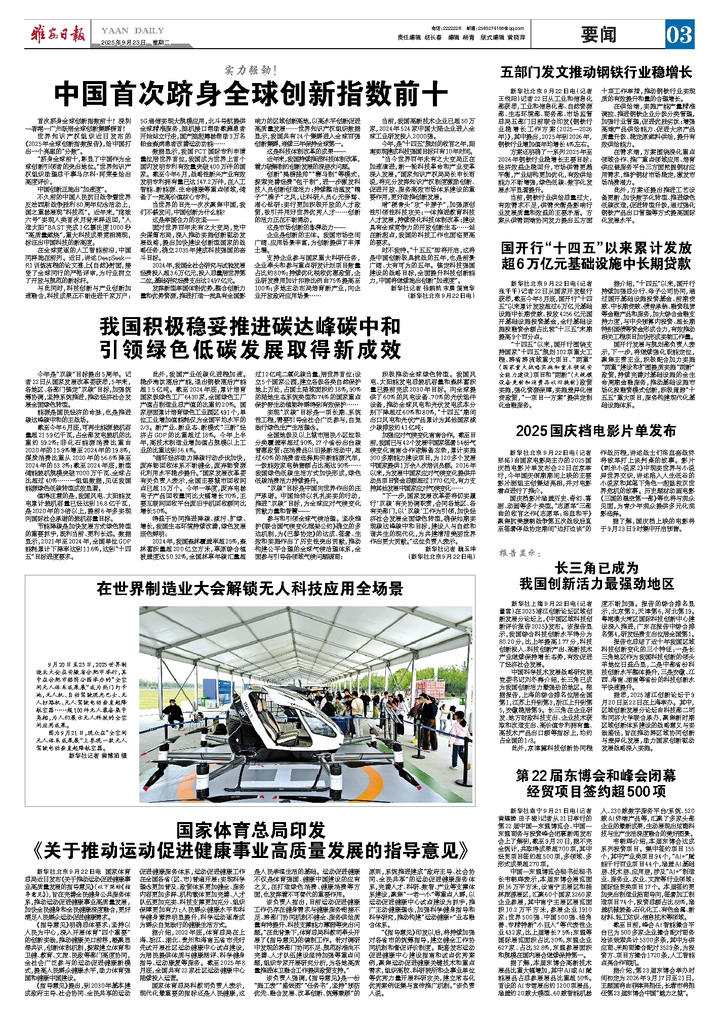 发挥新型举国体制优势,整合创新力量和优势资源,推进打造一批具有全国影响力的区域创新高地,以高水平创新促进高质量发展……世界知识产权组织数据显示,我国共有24个集群进入全球百强创新集群,连续三年保持全球第一。