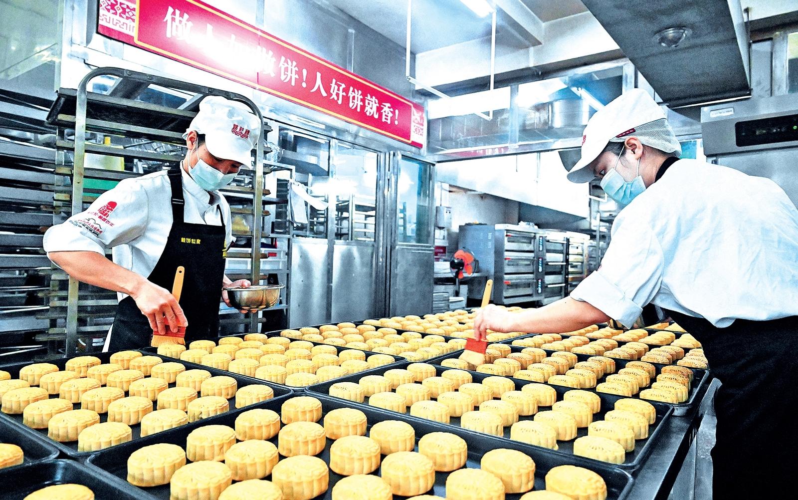 目前,各地加紧制作月饼,供应中秋节日市场。
