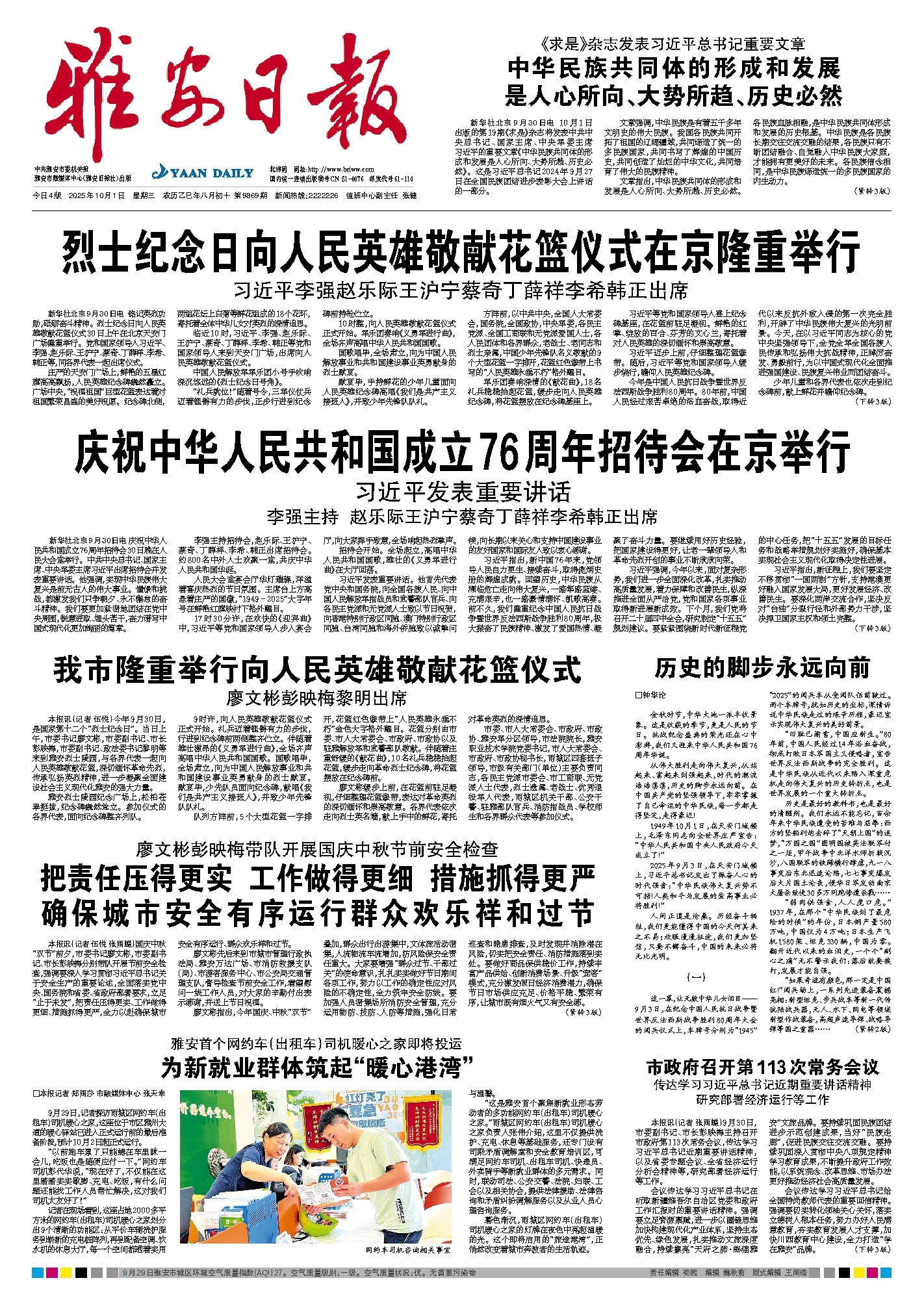 习近平指出,新中国76年来,党领导人民自力更生、接续奋斗,取得彪炳史册的辉煌成就。回望历史,中华民族从濒临危亡走向伟大复兴,一路筚路蓝缕、充满艰辛,也一路豪情满怀、凯歌高奏。前不久,我们隆重纪念中国人民抗日战争暨世界反法西斯战争胜利80周年,极大振奋了民族精神、激发了爱国热情、凝聚了奋斗力量。要继续用好历史经验,把国家建设得更好,让老一辈领导人和革命先烈开创的事业不断欣欣向荣。
