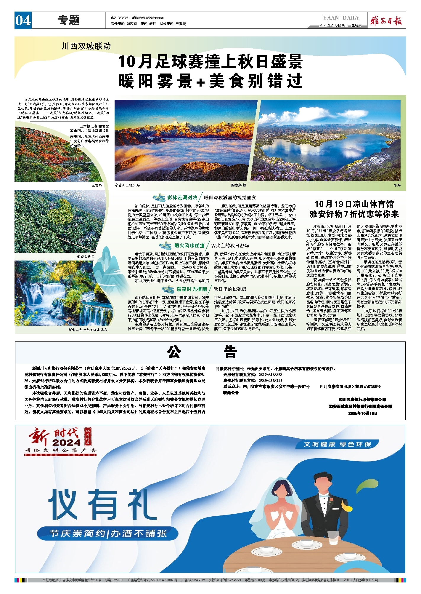 本报讯(记者 郑瑶)10月19日,“川超”雅安队将客场征战凉山队,赛场内球员奋力拼搏、点燃绿茵激情,赛场外4个雅安专属展位早已备好“惊喜”——化身“移动雅安特产馆”,汉源贡椒、藏香猪腊味、熊猫文创等特色好物集体亮相,更有云闪付扫码7折的实惠福利,邀凉山市民和球迷边看球赛边“淘”地道雅安味道。
