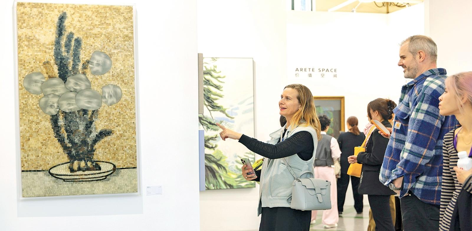 图为11月14日,观众在第十三届ART021上海廿一当代艺术博览会参观。