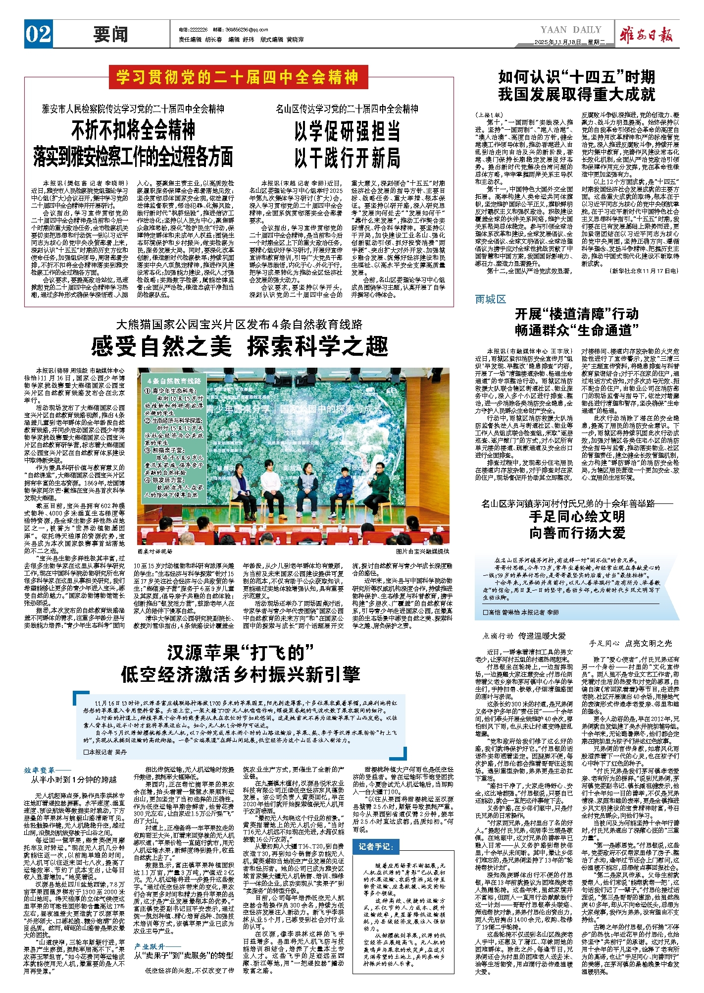 活动现场发布了大熊猫国家公园宝兴片区自然教育线路视频,推出4条涵盖儿童到老年群体的全年龄段自然教育线路,并同步启动国家公园少年博物学家挑战赛暨大熊猫国家公园宝兴片区自然教育研学营,标志着大熊猫国家公园宝兴片区在自然教育体系建设中取得新突破。