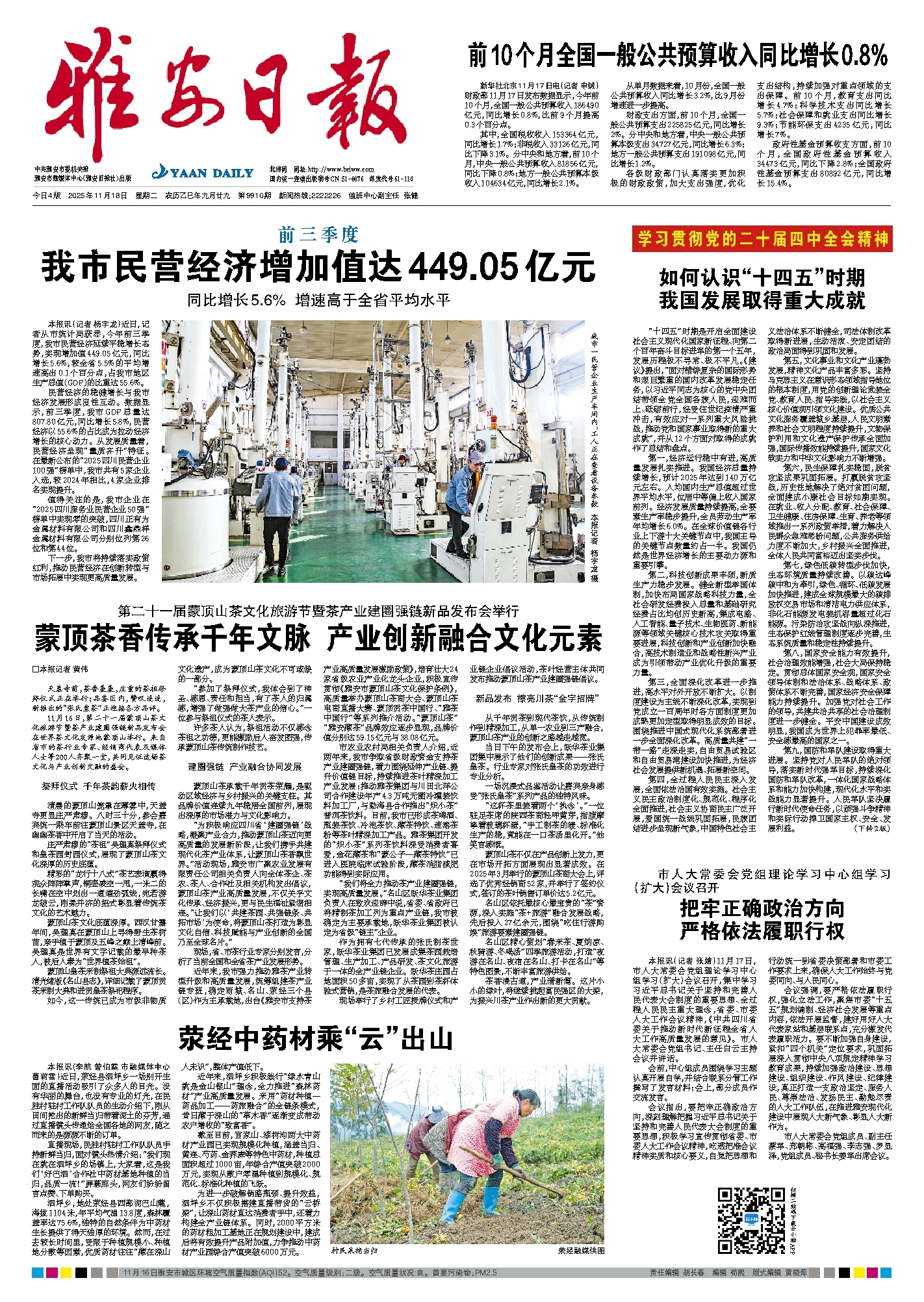 第一,经济运行稳中有进,高质量发展扎实推进。我国经济总量持续增长,预计2025年达到140万亿元左右。人均国内生产总值超过世界平均水平,位居中等偏上收入国家前列。经济发展质量持续提高,全要素生产率稳步提升,全员劳动生产率年均增长6.0%。在全球价值链各行业上下游十大关键节点中,我国主导的关键节点数量约占一半。我国仍然是世界经济增长的主要动力源和重要引擎。