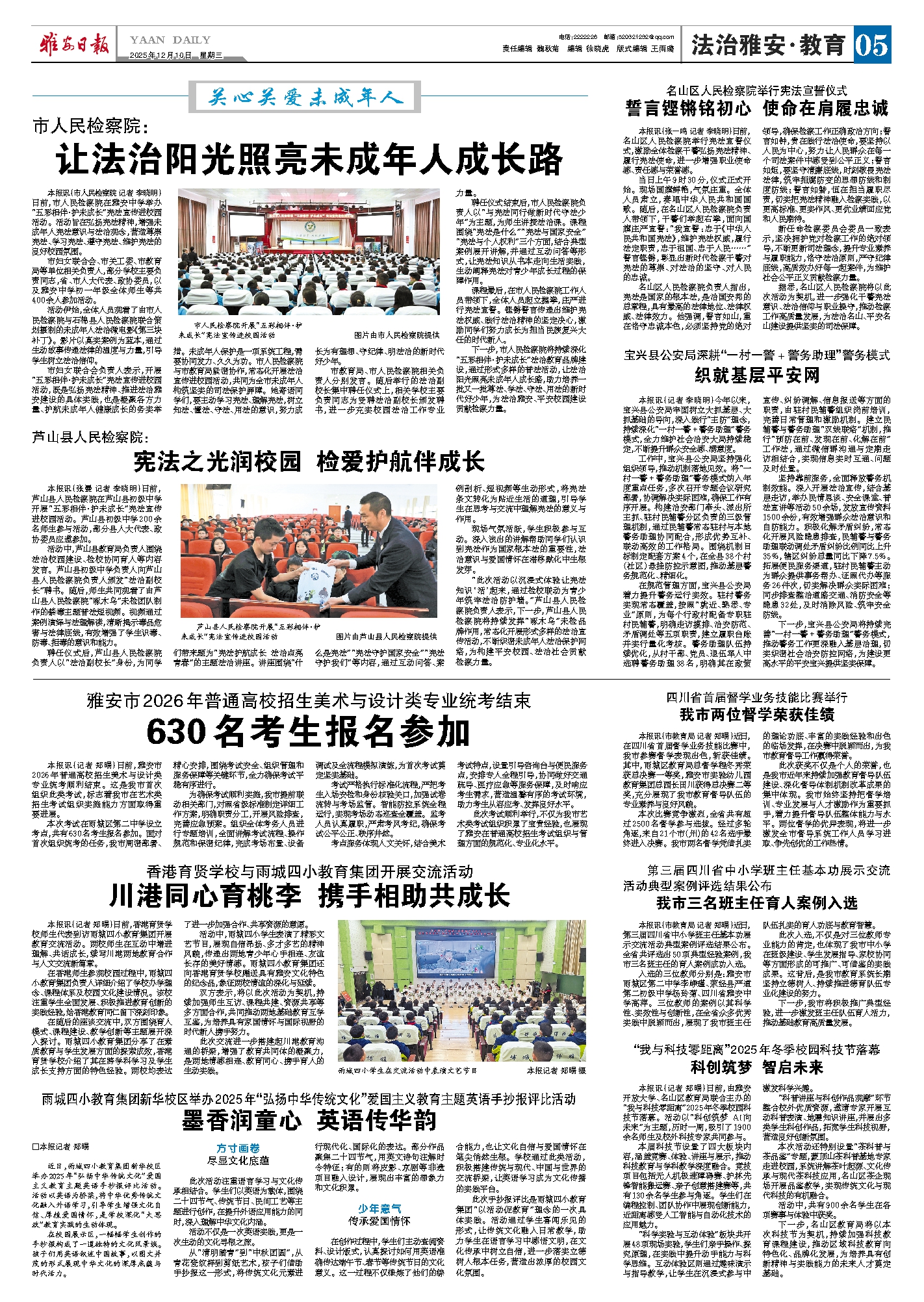 本报讯(张曼 记者 李晓明)日前,芦山县人民检察院在芦山县初级中学开展“五彩相伴·护未成长”宪法宣传进校园活动。芦山县初级中学200余名师生参与活动,部分县人大代表、政协委员应邀参加。