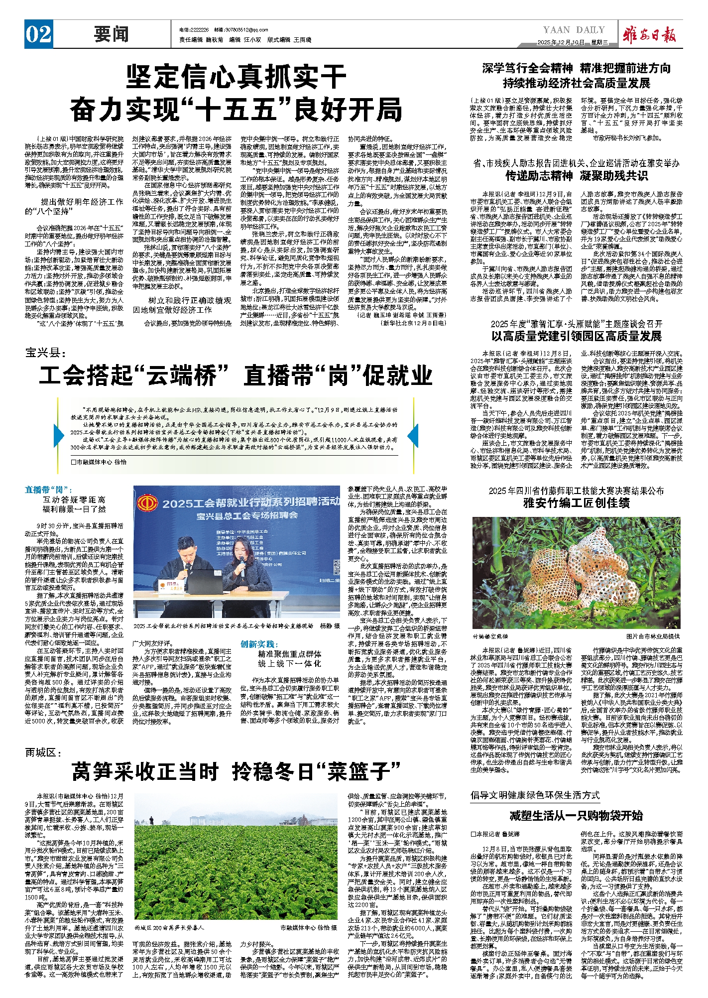 多营镇多营社区蔬菜基地的丰收景象,是雨城区全力保障“菜篮子”稳产保供的一个缩影。今年以来,雨城区严格落实“菜篮子”市长负责制,聚焦生产供给、质量监管、应急调控等关键环节,切实保障群众“舌尖上的幸福”。