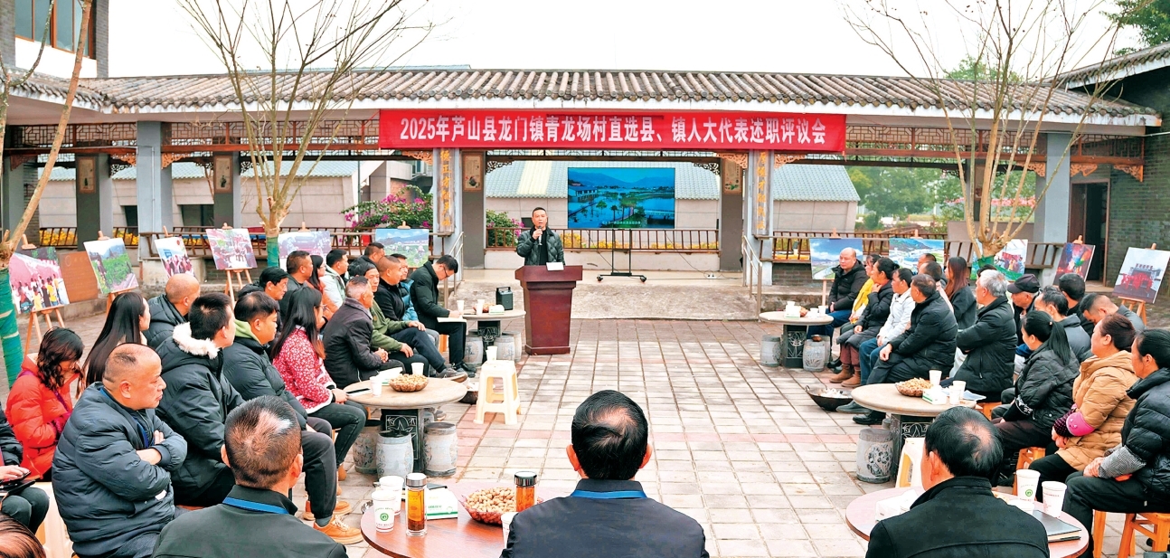 12月10日,芦山县龙门镇青龙场村。冬日暖阳刚洒向村委会院坝,30余名选民已围坐成圈,这里即将开启一场特殊的“龙门阵”。“摆谈”内容不是家常,而是9名县、镇人大代表今年的履职情况。
