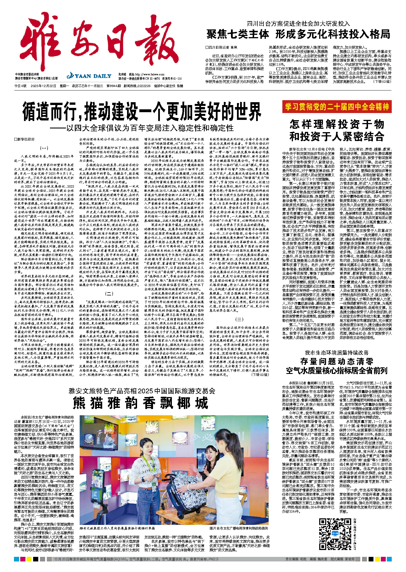 此次参展,我市以特色展品与“线下推介+线上直播”的创新模式,全方位展现了雅安生态康养、文化体验等多元文旅资源,让更多人认识雅安、向往雅安。未来,我市将持续深挖文旅内涵,推出更多优质文旅产品,不断擦亮“天府之肺·熊猫雅安”的文旅品牌。