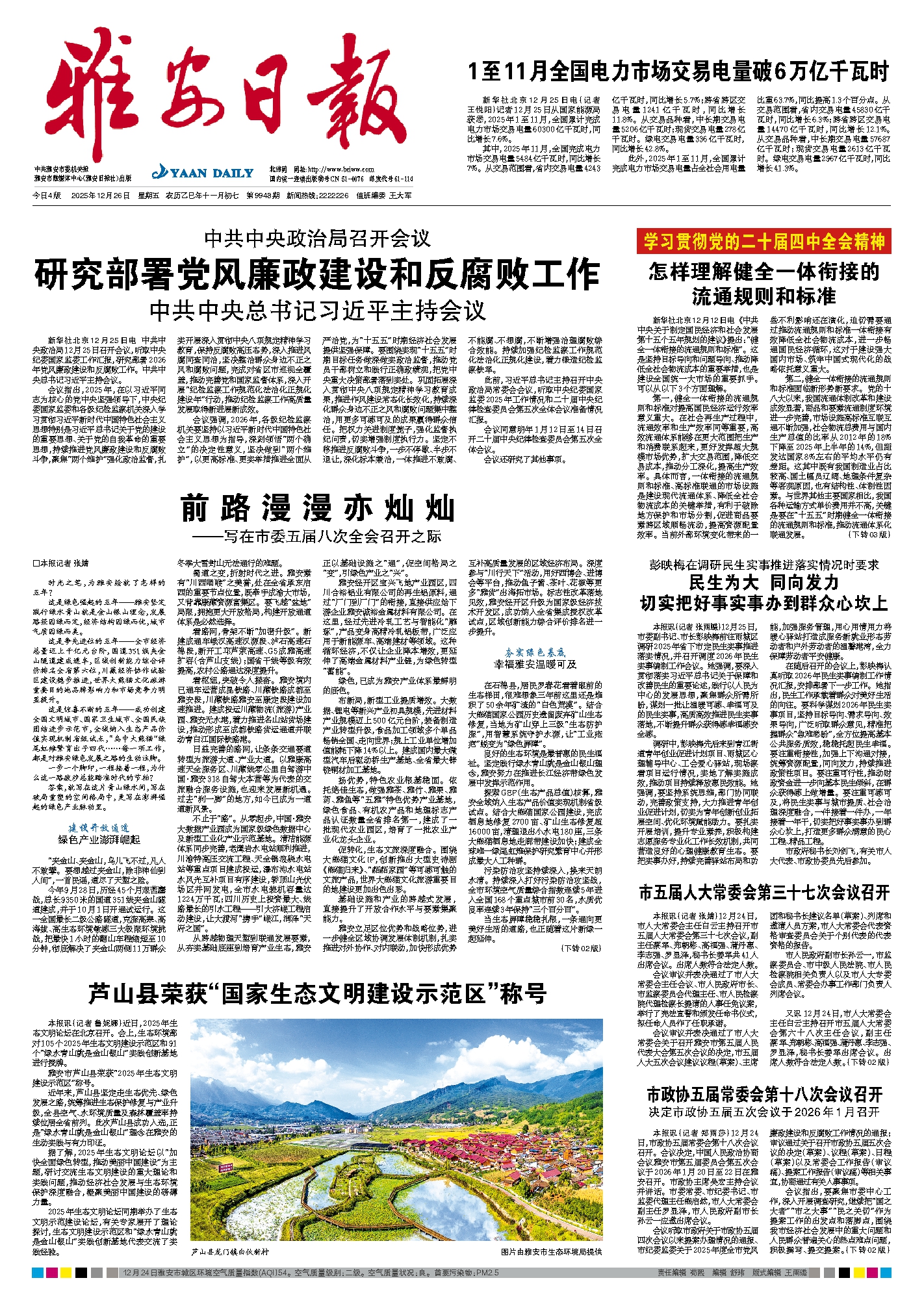雅安市芦山县荣获“2025年生态文明建设示范区”称号。