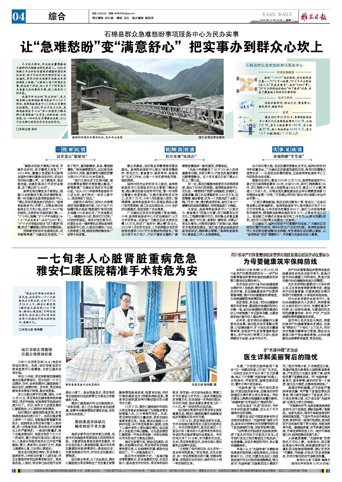 “现在治疗肾结石的技术真先进,在后背打一个小孔就能把石头取出来,太好了!”12月26日上午,雅安仁康医院(雅安结石病医院)(以下简称:雅安仁康医院)外科住院病房内,来自眉山市仁寿县的老两口说起治疗结石病的经历,感慨不已。