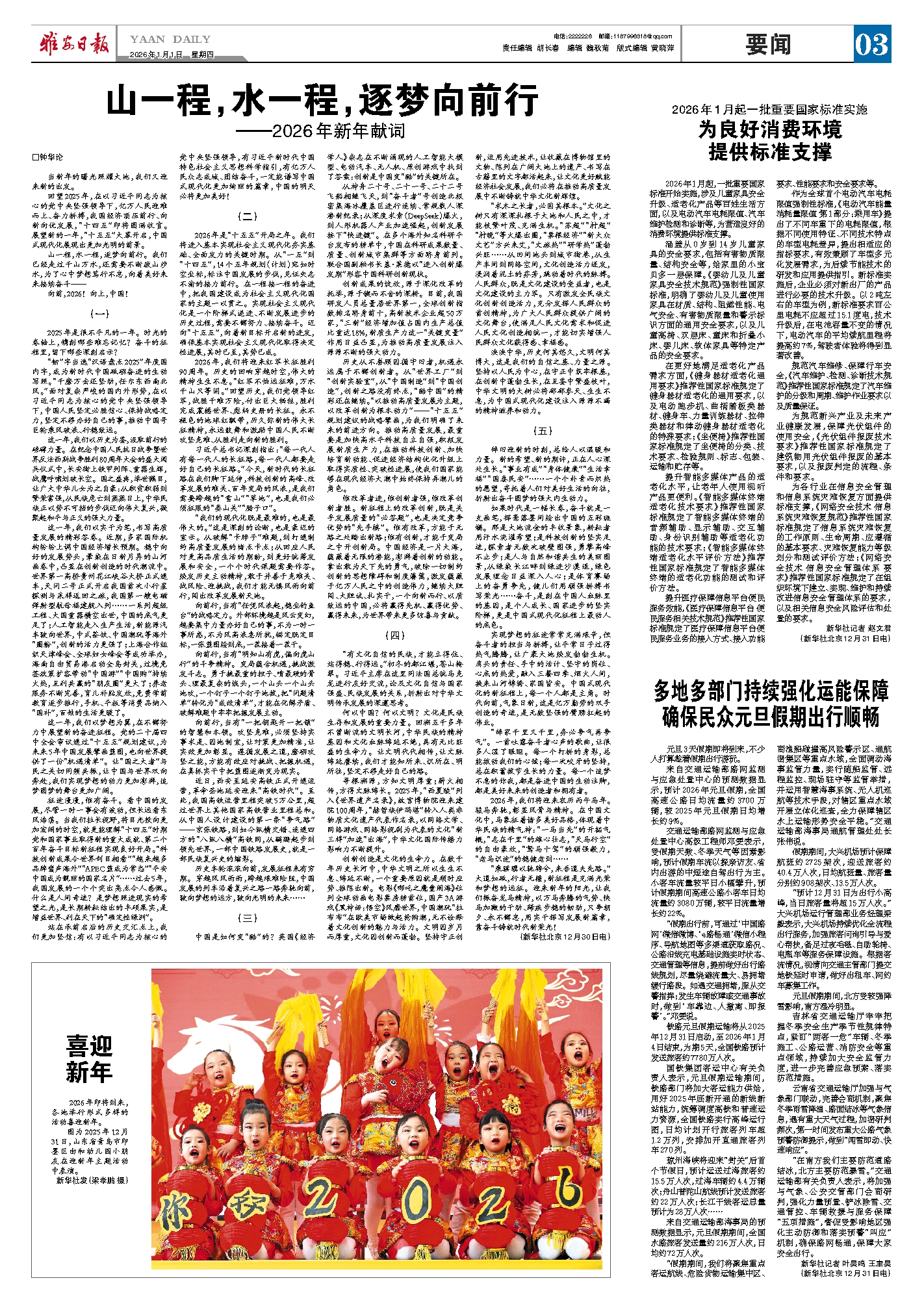 国铁集团客运中心有关负责人表示,元旦假期运输期间,铁路部门将加大客运能力供给,用好2025年底新开通的新线新站能力,统筹调度高铁和普速运力资源,全国铁路实行高峰运行图,日均计划开行旅客列车超1.2万列,安排加开直通旅客列车270列。
