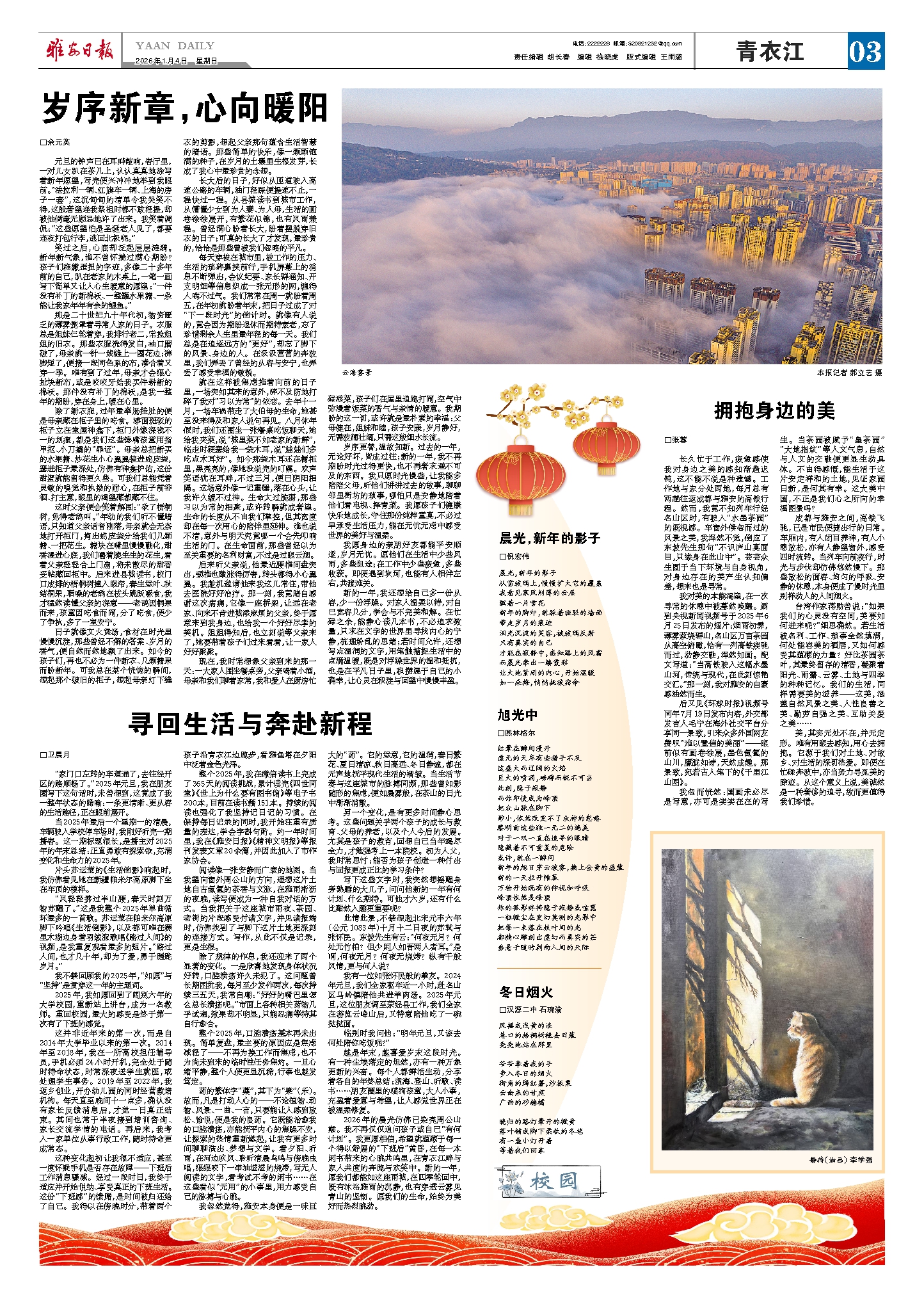 新的一年,我还想给自己多一份从容,少一份浮躁。对家人温柔以待,对自己宽容几分,学会与不完美和解。在忙碌之余,能静心读几本书,不必追求数量,只求在文字的世界里寻找内心的宁静,梳理纷乱的思绪;若时间允许,还想写点温润的文字,用笔触捕捉生活中的点滴温暖,既是对浮躁世界的温和抵抗,也是在平凡日子里,积攒属于自己的小确幸,让心灵在积淀与回望中慢慢丰盈。