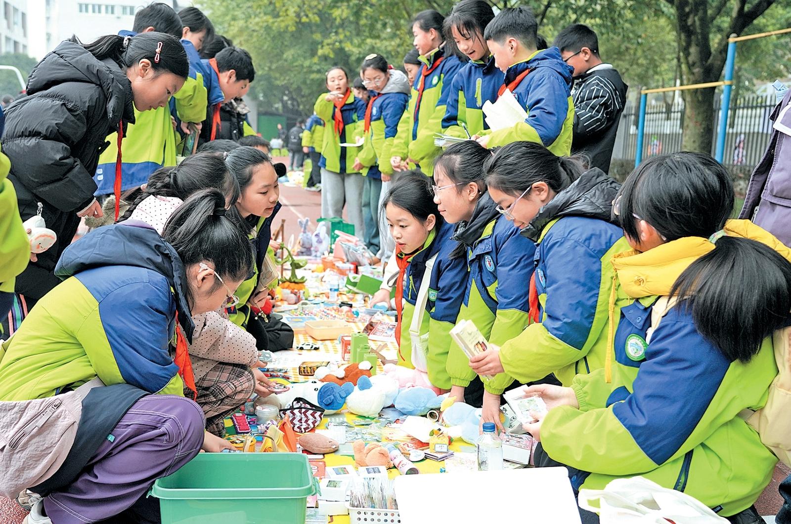 本次活动注重将价值引领与行为养成有效结合。前期,学校各班级通过主题班会、环保课堂等形式,向学生普及资源循环利用知识,引导学生理解“闲置焕新生”的意义。活动现场,同学们带来书籍、文具、玩具、手工艺品等物品,经过清洁整理、合理定价,在交流与交易中实现了物品价值的延续,并悄然将共享理念、节约意识进行有效传递,从而在大家心中播下一颗绿色生活的种子。