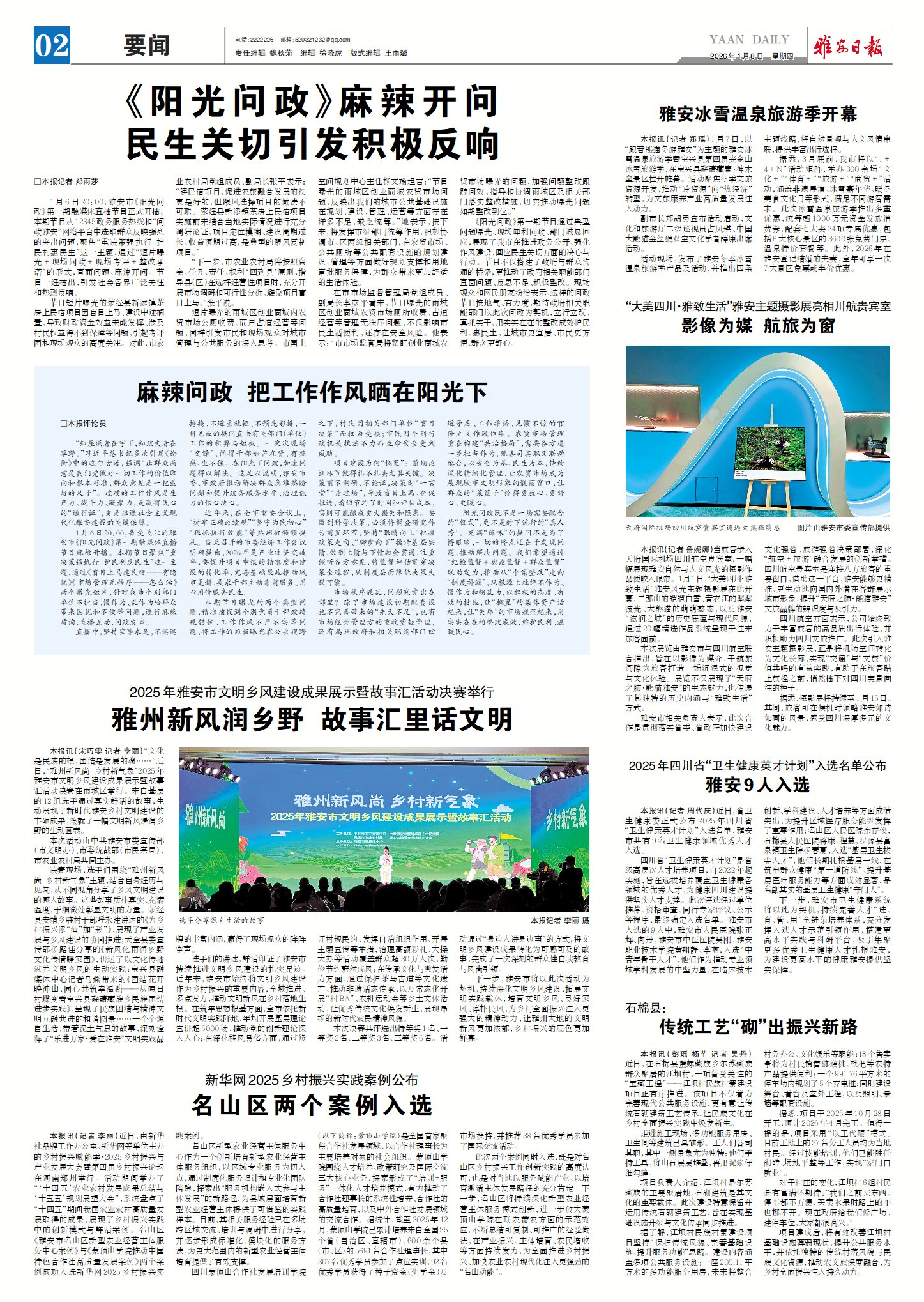 本报讯(记者 周代庆)近日,省卫生健康委正式公布2025年四川省“卫生健康英才计划”入选名单,雅安市共有9名卫生健康领域优秀人才入选。