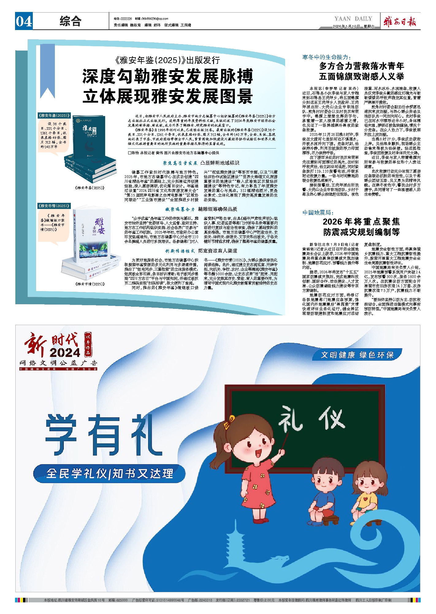 同时,推出的《雅安年鉴》微缩版口袋书——《雅安市情(2025)》,为群众提供亲民化阅读选择。此外,通过建立史志阅览室、开辟专柜,向机关、学校、农村、企业等赠阅《雅安年鉴》等书籍5000余册,让史志成果“活”起来、用起来,充分发挥其存史、资政、育人的重要作用,为谱写中国式现代化雅安新篇章贡献独特的史志力量。