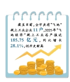 本报讯(记者 杨宇龙)日前,记者从市经济和信息化局获悉,2025年,我市“飞地经济”规上工业总产值突破180亿元,达185.75亿元。