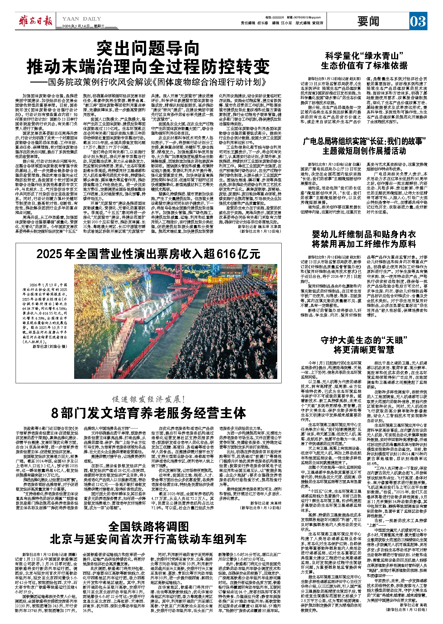 新华社北京1月13日电(记者 赵文君)记者13日从市场监管总局获悉,《生态系统评估 陆域生态产品总值核算技术指南》国家标准近日发布实施,为科学量化我国“绿水青山”的生态价值提供了标准技术依据。