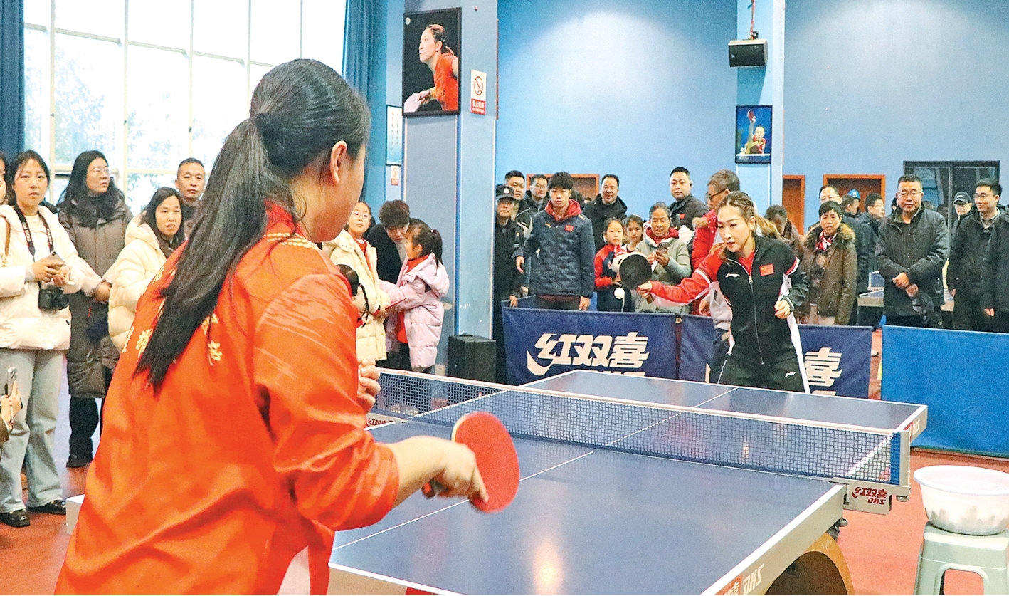 刘诗雯与雅安球友切磋球技 本报记者 戴富丽 摄