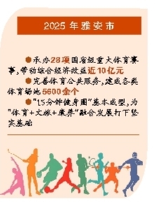 近年来,雅安深耕赛事经济推动体育产业发展,2025年承办28项国省级重大体育赛事,带动综合经济效益近10亿元;同时完善体育公共服务,建成各类体育场地5600余个,“15分钟健身圈”基本成型,为“体育+文旅+康养”融合发展打下坚实基础。