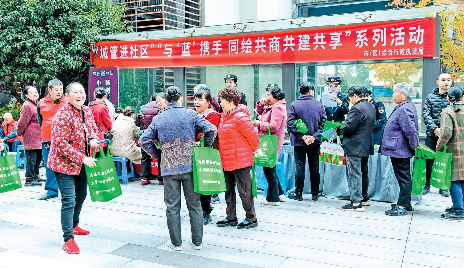 市、区城管执法人员联合开展“城管进社区”“与‘蓝’携手 同绘共商共建共享”系列活动
