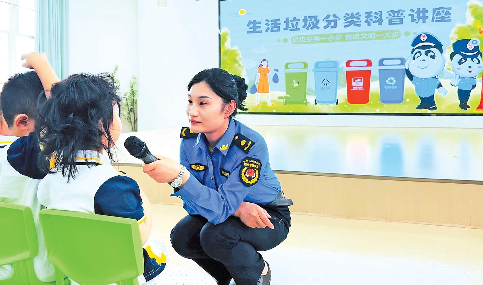 城管执法人员进校园举办生活垃圾分类科普讲座
