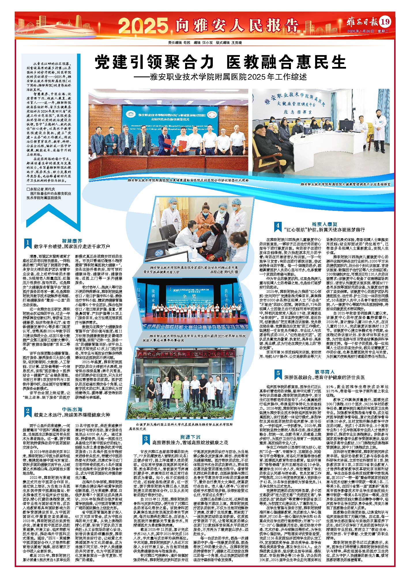 在这张网络的每个节点,都涌动着生命的温度与发展的活力,书写着雅职附院扎根地方、服务民生、助力发展的年度答卷,也诠释着新时代医疗卫生机构的责任与担当。