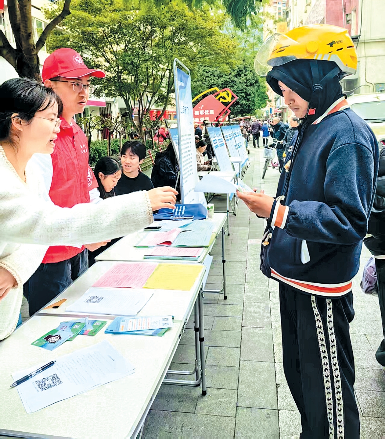 工作人员在街头开展公积金政策宣传