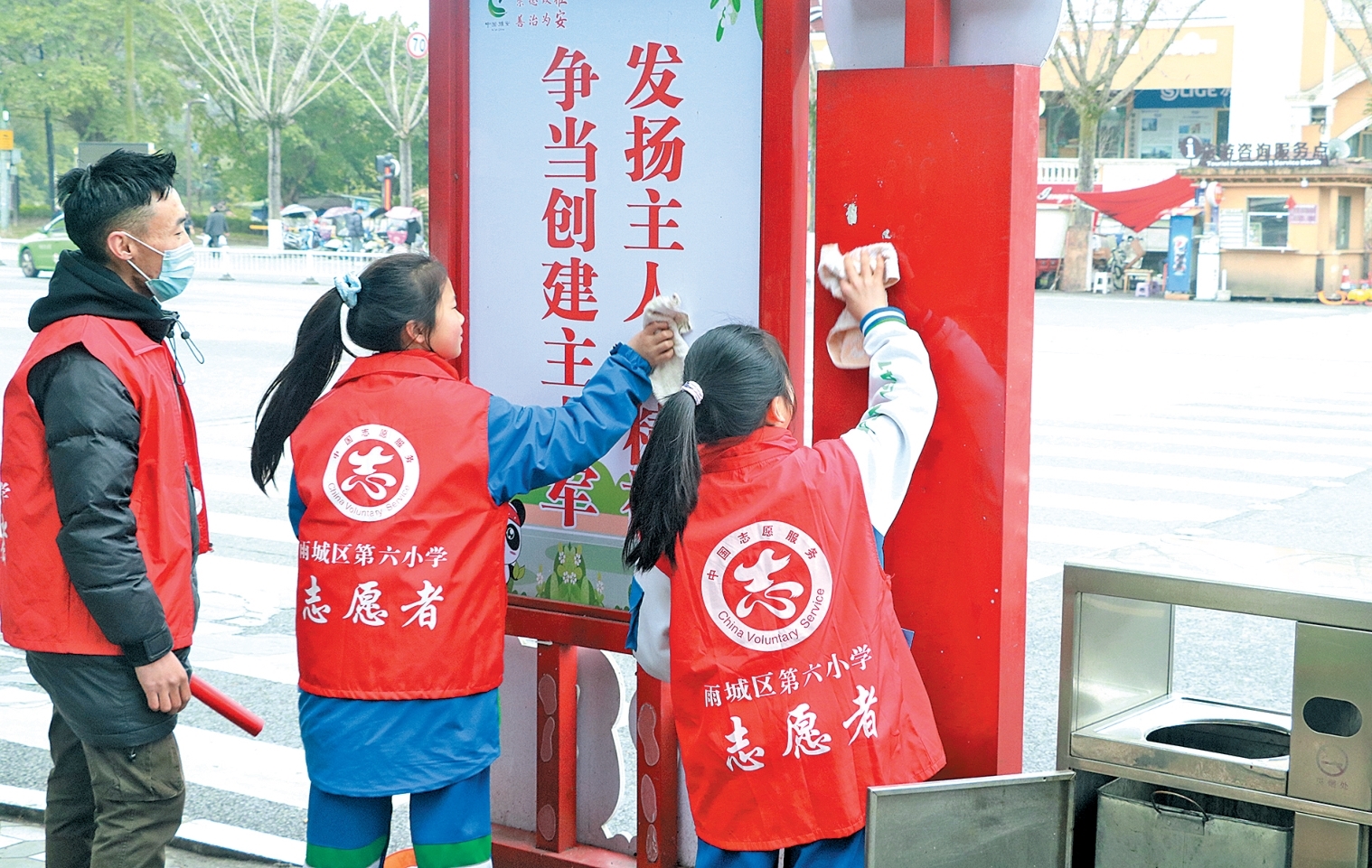 学校组织学生开展学雷锋志愿服务活动本报记者 郑暘 摄