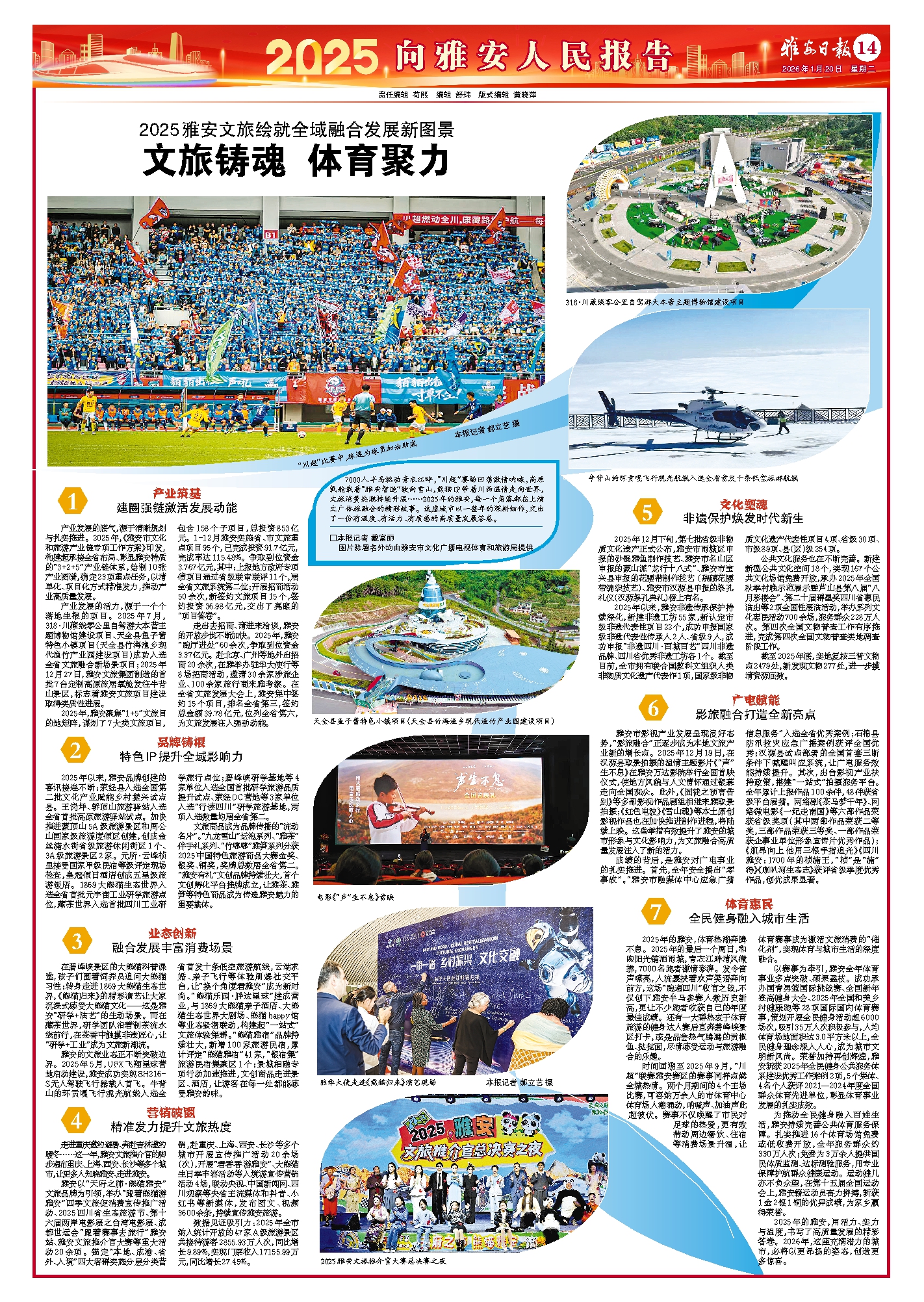 7000人半马燃动青衣江畔,“川超”赛场回荡激情呐喊,高原氧舱载着“雅安智造”驶向雪山,熊猫IP带着川西温情走向世界,文旅消费热潮持续升温……2025年的雅安,每一个角落都在上演文广体旅融合的精彩故事。这座城市以一整年的深耕细作,交出了一份有温度、有活力、有质感的高质量发展答卷。