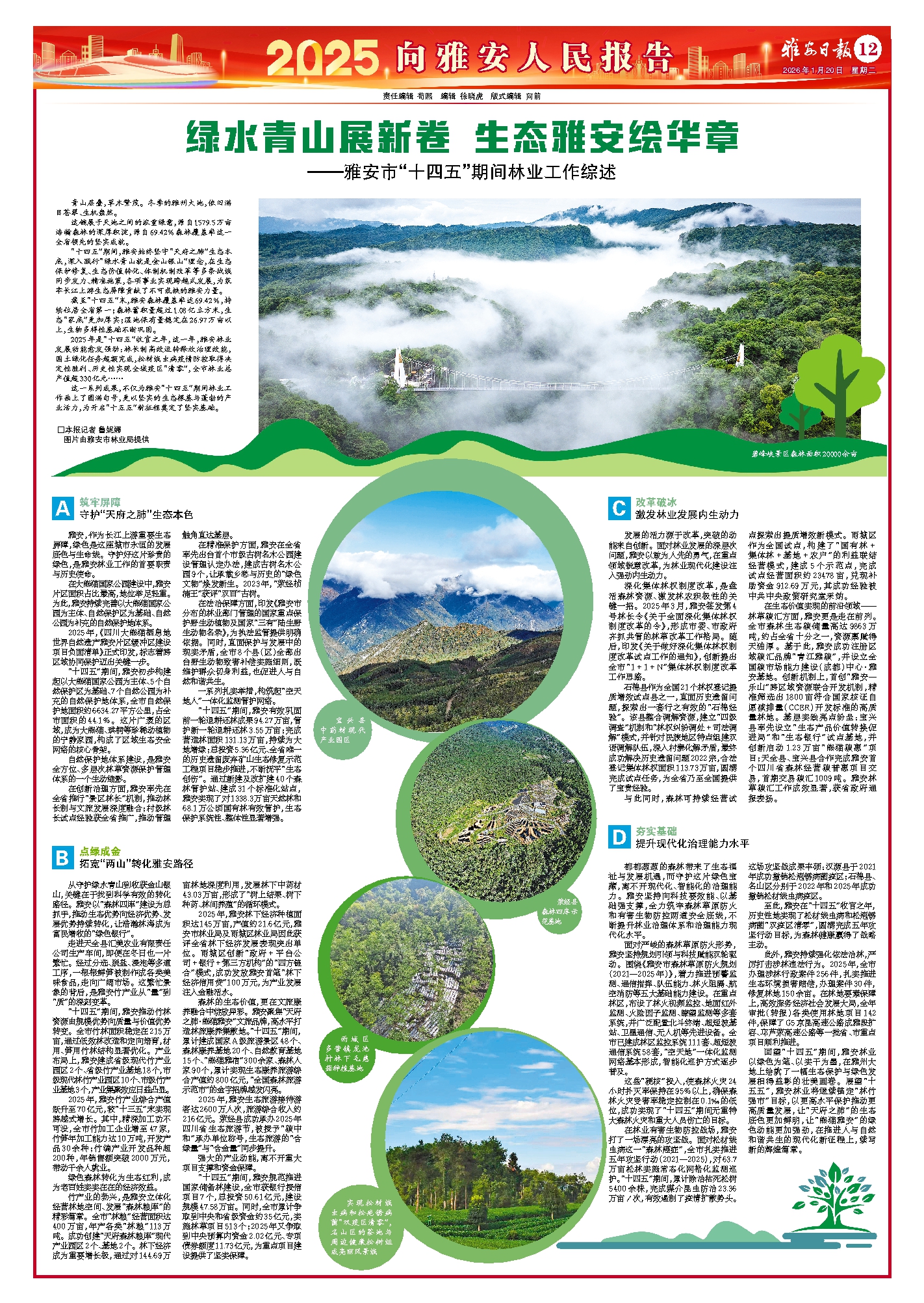 2025年是“十四五”收官之年,这一年,雅安林业发展动能愈发强劲:林长制高效运转释放治理效能,国土绿化任务超额完成,松材线虫病疫情防控取得决定性胜利、历史性实现全域疫区“清零”,全市林业总产值超330亿元……