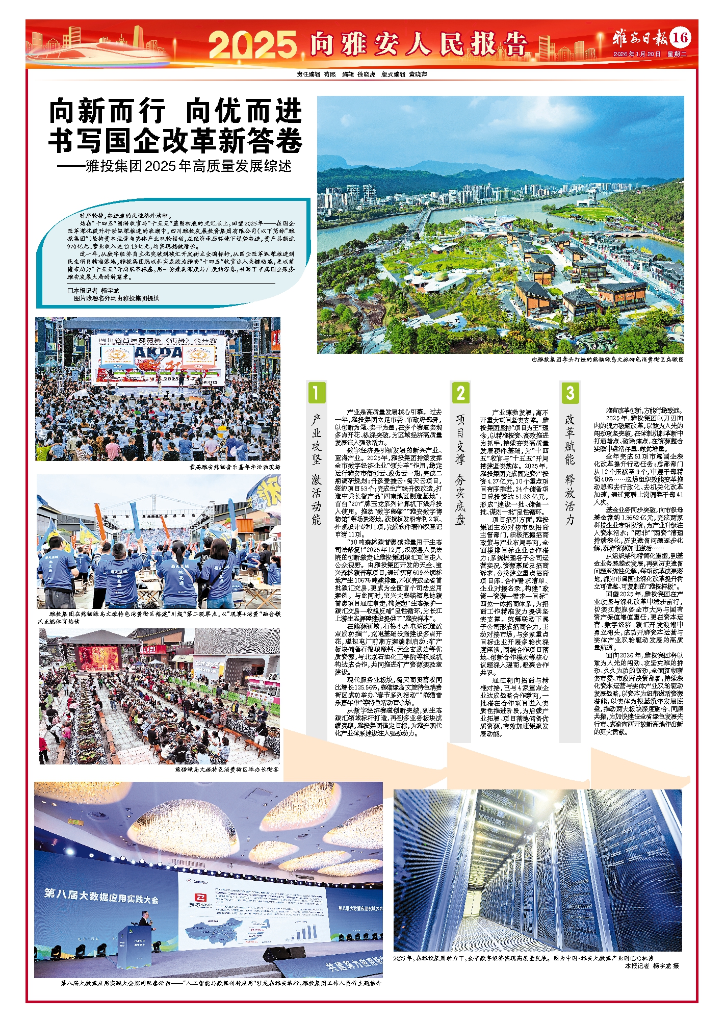 2025年,雅投集团以刀刃向内的魄力破题改革,以敢为人先的闯劲攻坚突破,在体制机制革新中打通堵点、破除痛点,在资源整合实践中盘活存量、做优增量。