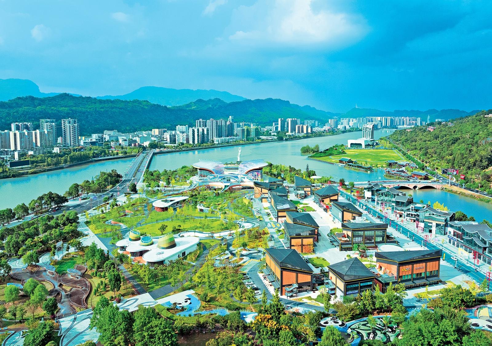 由雅投集团牵头打造的熊猫绿岛文旅特色消费街区鸟瞰图