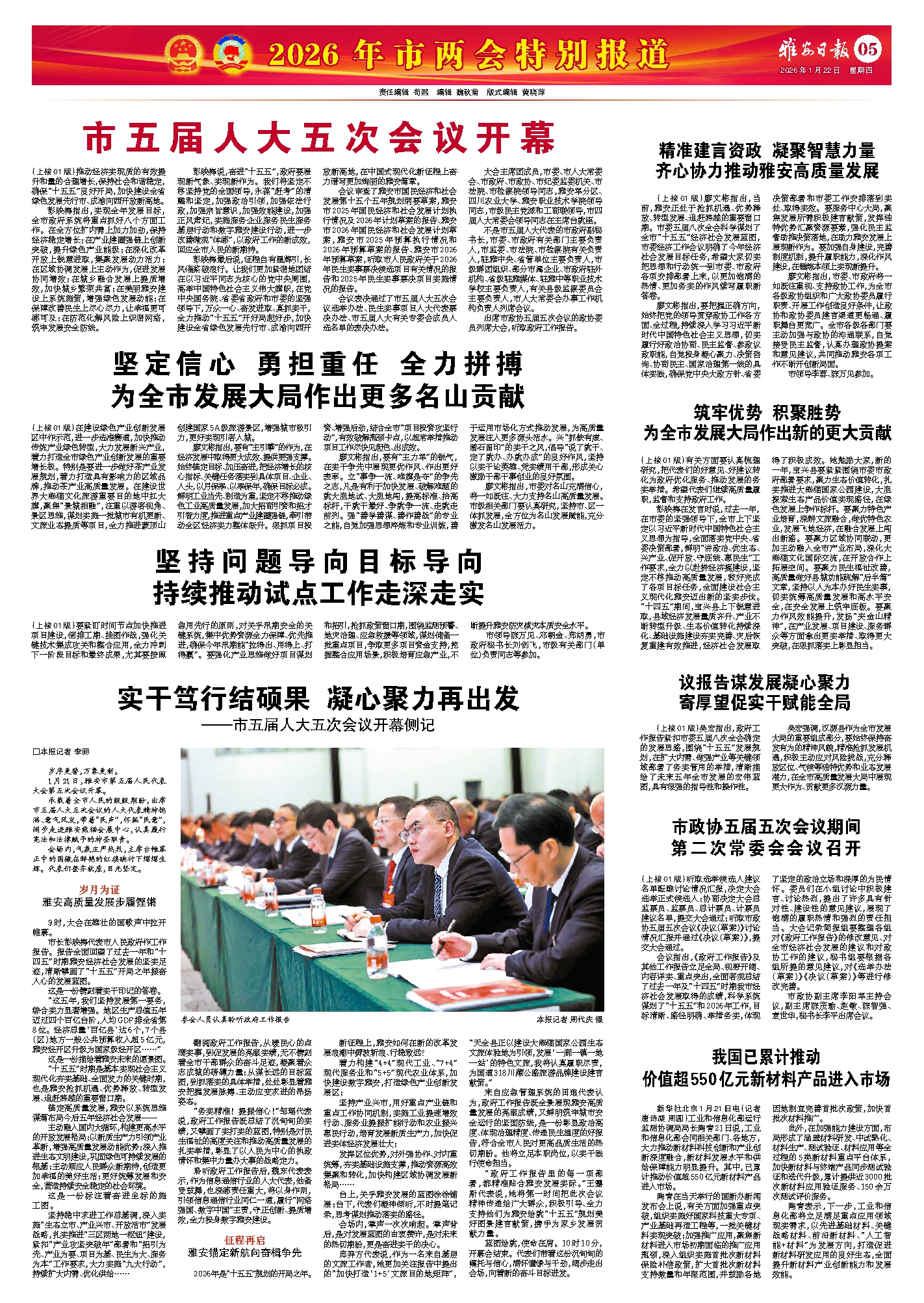 (上接01版)吴宏指出,政府工作报告紧扣市委五届八次全会确定的发展思路,围绕“十五五”发展规划,在扩大内需、做强产业等关键领域部署了务实管用的举措,清晰描绘了未来五年全市发展的宏伟蓝图,具有很强的指导性和操作性。