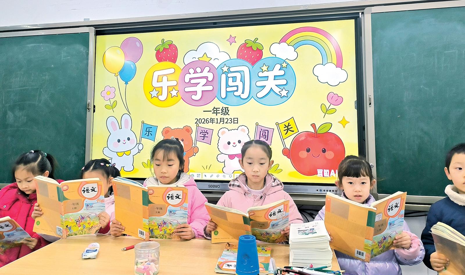 本报讯(记者 郑暘)没有试卷,不用动笔,取而代之的是趣味游戏和欢声笑语。1月23日,雨城四小教育集团新华校区举行一、二年级期末无纸化“乐学闯关”活动。活动以趣味游戏替代传统纸笔测试,学生们手持“闯关卡”,穿梭于各个游戏关卡之间,在轻松愉快的氛围中完成了一次特别的学业测评。