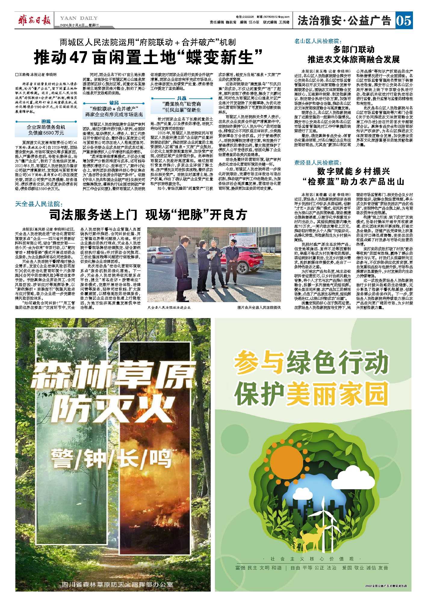 2025年,雨城区人民法院依托与雨城区人民政府建立的“企业破产处置府院联动机制”,推动两家企业闲置的土地资源纳入区域“温泉+文旅”产业规划,以优化土地资源配置效率,加快资产变现,促进区域产业转型升级。此举得到雨城区人民政府高度重视。通过招商引资宣传推介,多家企业详细了解土地、房产情况及司法拍卖流程,最终成功拍出相关资产。法院及时厘清土地、房产权属,作出了确认破产企业资产处置和产权转移裁定书。