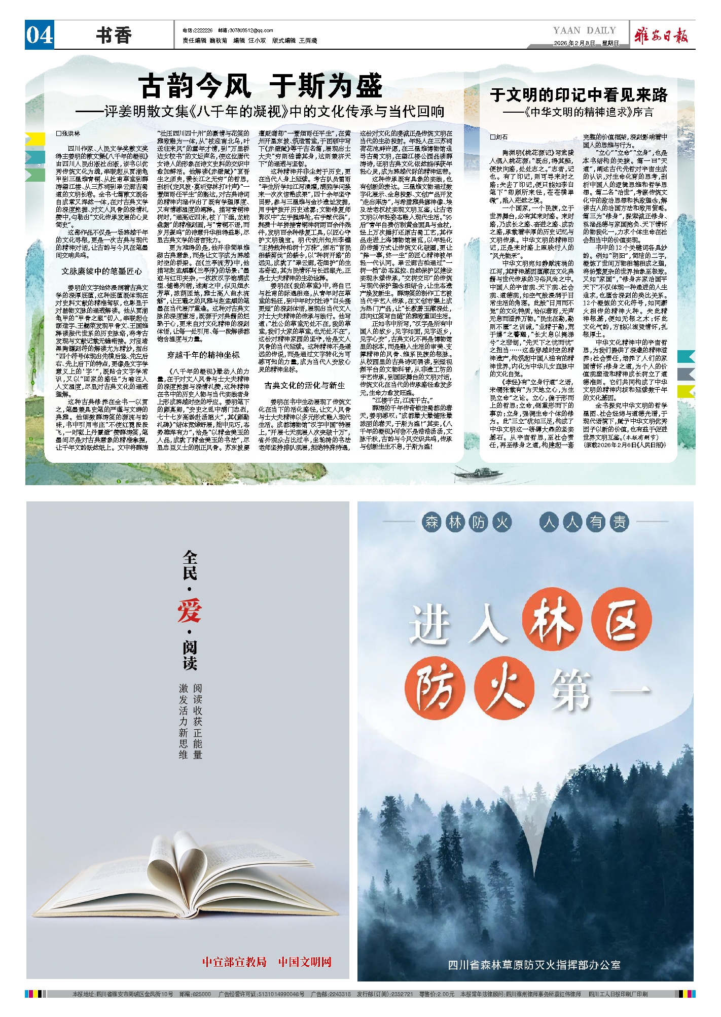 四川作家、人民文学奖散文奖得主姜明的散文集《八千年的凝视》由四川人民出版社出版,该书以优秀传统文化为魂,串联起从贾湖龟甲到三星堆青铜、从杜甫草堂到薛涛望江楼、从三苏祠到翠云廊古蜀道的文明长卷。全书七篇散文既各自成章又浑然一体,在对古典文学的深度挖掘、对文人风骨的深情礼赞中,勾勒出“文化传承发展的心灵简史”。