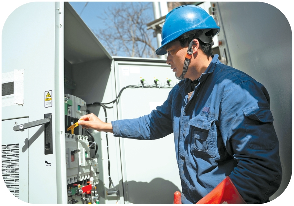 电力工人安装电力储能柜