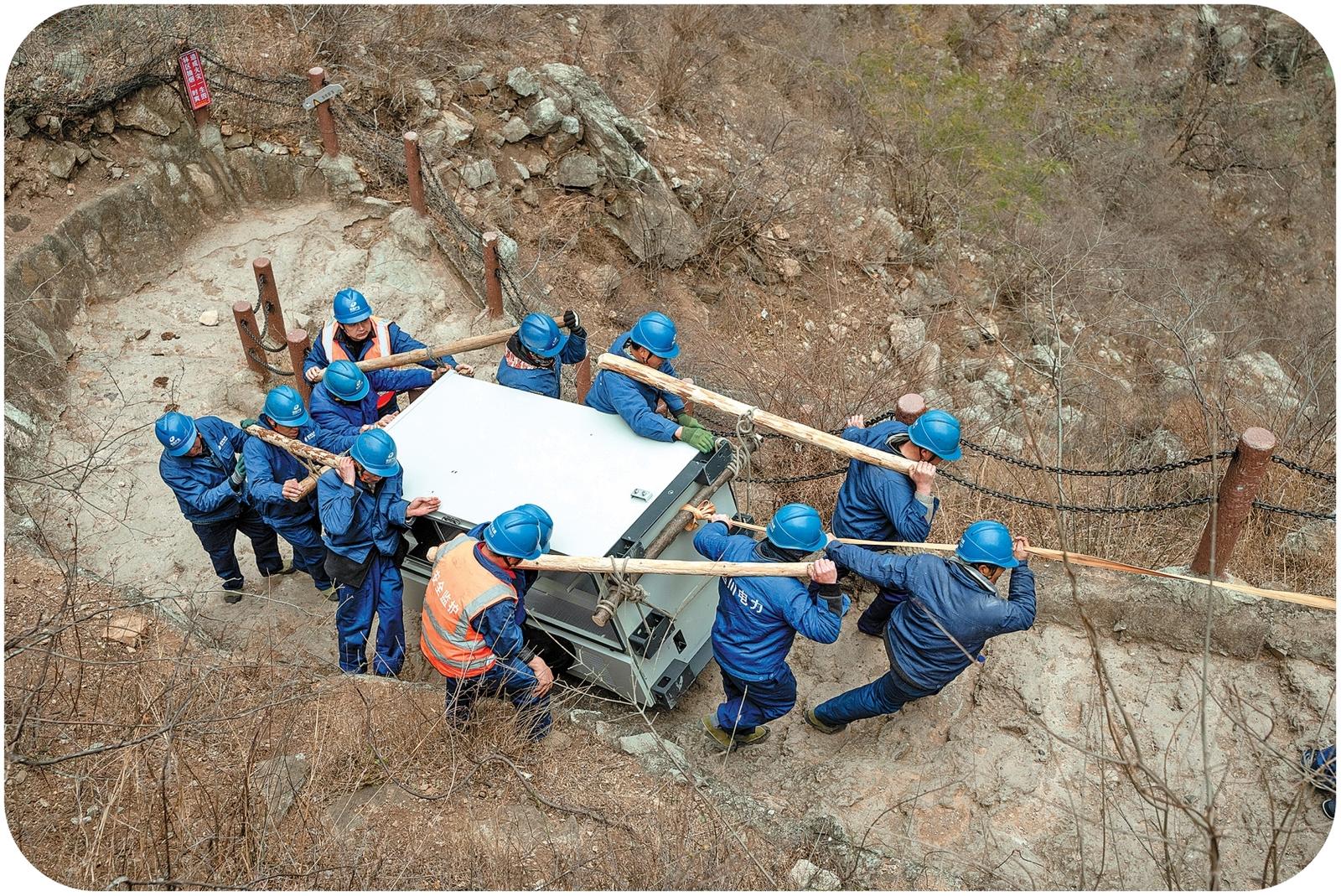 “作为山区电力工人,以往没少走这条路,但搬运着上千斤设备走,是第一次。”石小峰说,“这一次,我用身体感受到岩壁的温度与质感。”