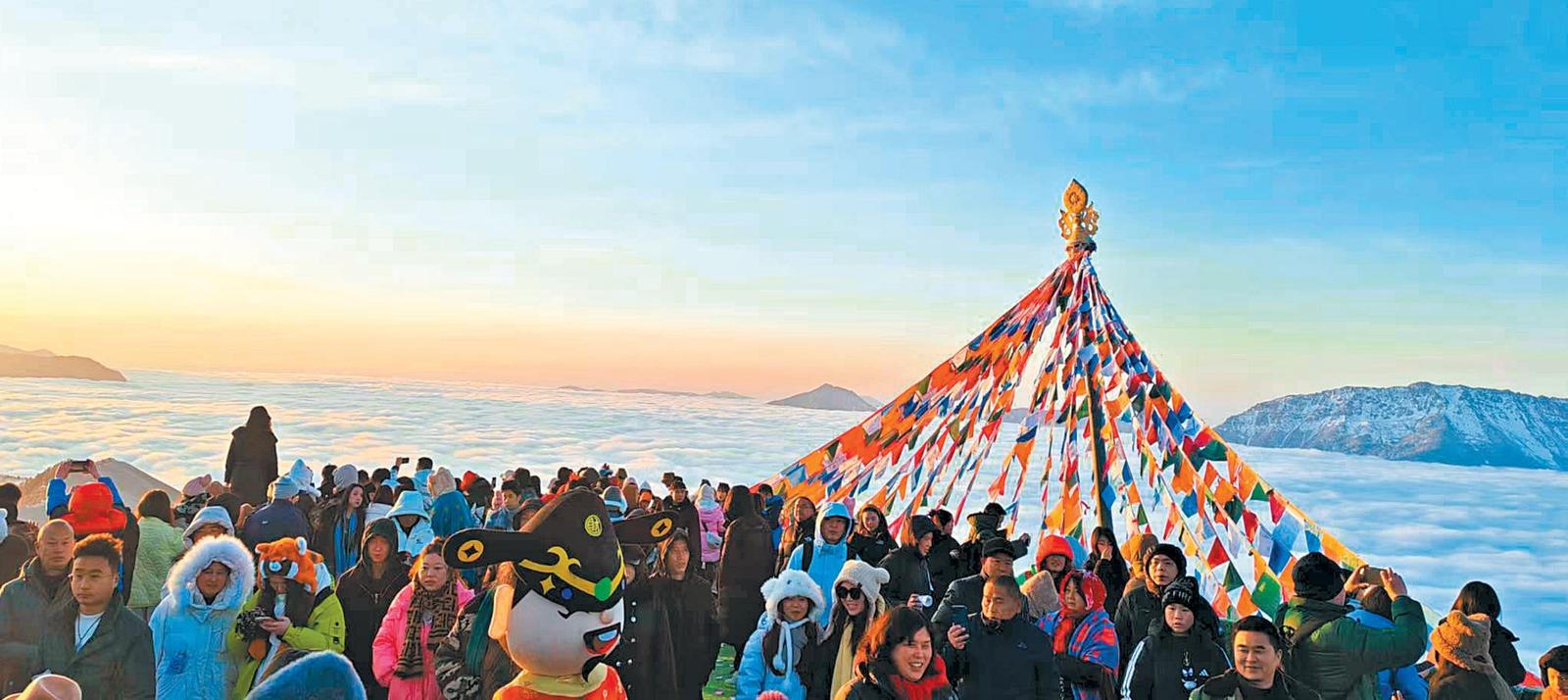 游客在达瓦更扎景区观日出云海